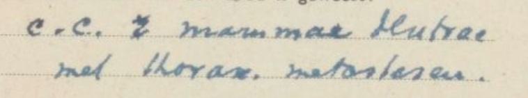 c.c. mammae slutrae ??? met thorax. metastasen.
