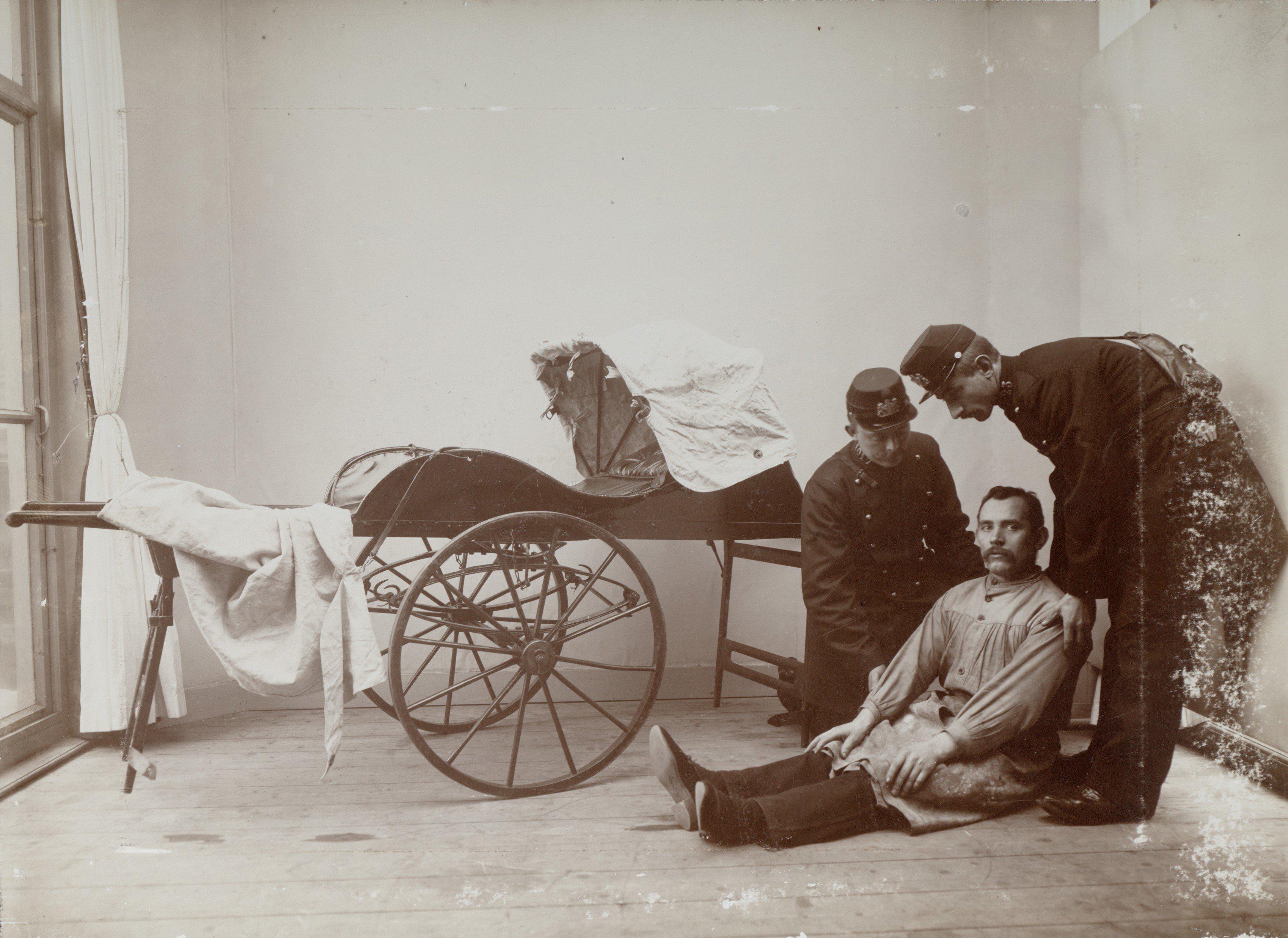 Lees het verhaal hier met leuke anekdotes van een politieagent en mooie afbeeldingen van ‘primitief’ ziekenvervoer.