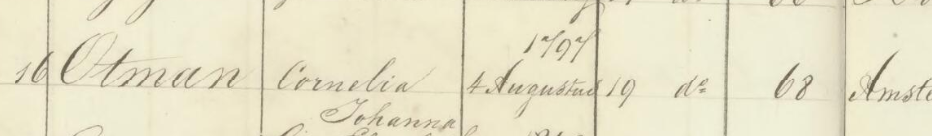 DeelnemerCornelia Otman is geboren in Amsterdam omstreeks 1781; waarschijnlijk dezelfde als: