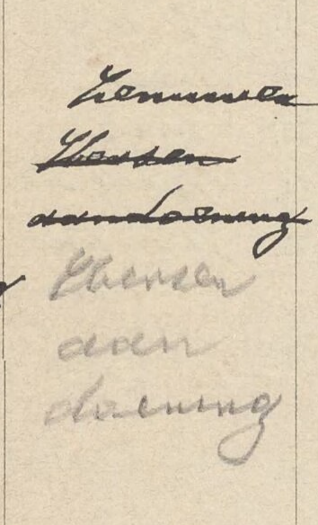Bovenaan staat Zenuwen. Wat is het eerste woord in potlood, gevolgd door aandoening?