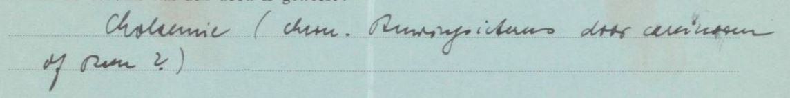 Ik lees: Cholaemie (chron Ruwingsicterus door carcinomen op ..?)