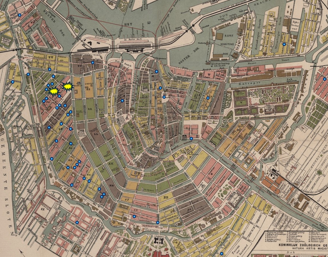 Ten slotte kunnen we vaststellen dat alle betrokkenen op het moment van deze gebeurtenissen in Amsterdam woonden, maar ook veruit de meeste van hen waren geboren en getogen in Amsterdam (78%). Hieronder op de kaart van Amsterdam is te zien waar de patiënten woonachtig waren. De meeste betrokkenen kwamen uit de Jordaan, de plek waar het Palingoproer plaatsvond. Misschien is dat niet zo gek, aangezien volgens historici deze oproer vooral voortkwam uit de ontevredenheid over werkloosheid en sociale discriminatie. Veel Jordanezen ervoeren het palingtrek-verbod als het ontnemen van hun laatste pleziertje. Bovendien toonde het politieoptreden volgens hen de grote afstand tot de gewone man.