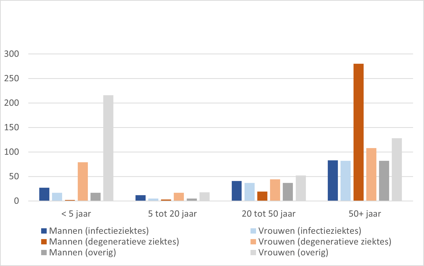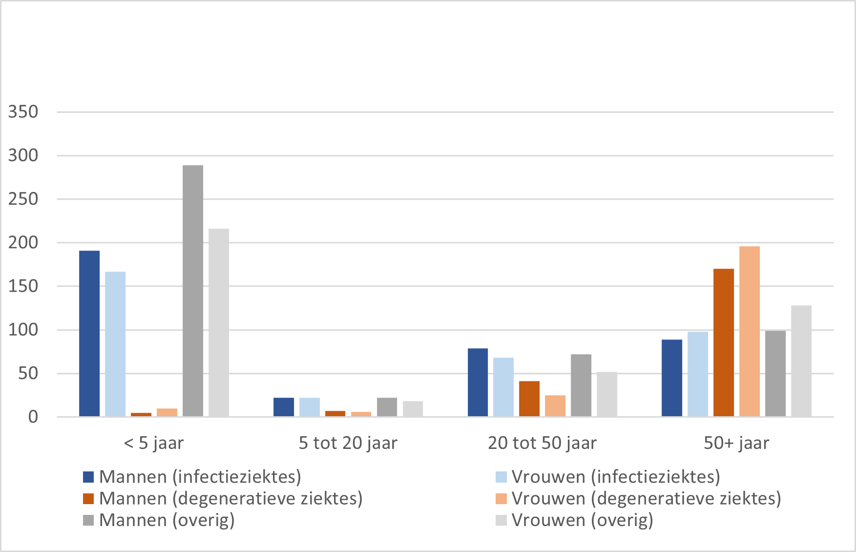 Om een beeld te krijgen van deze gezondheidstransitie in Zutphen, zijn doodsbriefjes in combinatie met de burgerlijke stand onderzocht. Om een eerste beeld te schetsen van waar mensen aan overleden, zijn de verschillende doodsoorzaken ingedeeld naar een verdeling tussen infectieziekten en degeneratieve doodsoorzaken. In grafiek 1 en 2 worden de resultaten hiervan getoond. De dominante doodsoorzaken verschoven in beperkte mate van infectieziektes naar door de mens veroorzaakte en degeneratieve ziektes in de periode 1892-1936, zoals de epidemiologische transitie voorspelt. Er was bovendien gedurende de gehele periode sprake was van een hoog sterftecijfer, waarbij infectieziektes ook belangrijk blijven als doodsoorzaak. Toch nam de levensverwachting wel toe, aangezien mensen wel op latere leeftijd stierven. Als laatste is er geen verschuiving in dominante doodsoorzaak te zien onder mannelijke kinderen, maar wel onder vrouwen. Het sterftecijfer voor beide groepen daalde daarentegen wel.